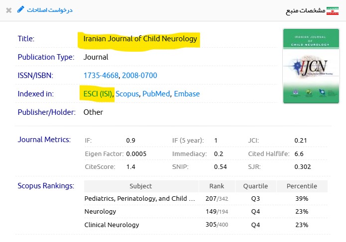 Iranian Journal of Child Neurology 15 Sep 2025 |