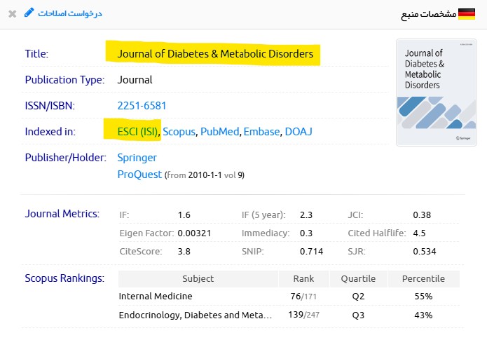 Journal of Diabetes & Metabolic Disorders 07 November 2025 |