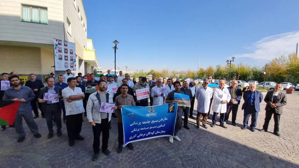 تجمع کادر درمان بیمارستان کودکان زهرا مردانی آذری در محکومیت رژیم صهیونیستی