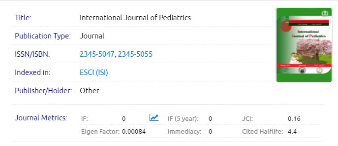 ESCI (ISI) | International journal of pediatrics Aug 2022 34(6): 54-60. |