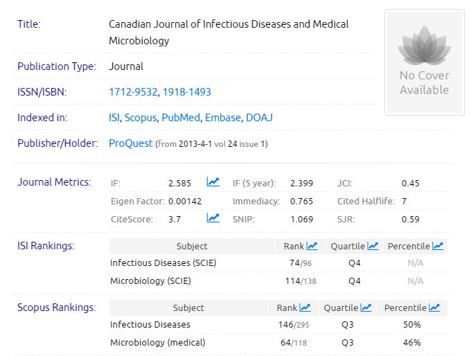 | 4 | Mucosa-Associated Escherichia coli in colorectal cancer patients and control subjects: variations in the prevalence and attributing features | ESCI (ISI), Scopus, PubMed, DOAJ | Canadian Journal of Infectious Diseases and Medical Microbiology Nov 2021 2131787, 8 pages |